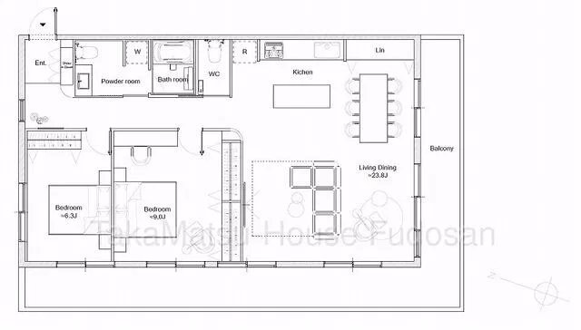- Floorplan: 2LDK (Living Dining 23.8J, Bedroom 9.0J, Bedroom 6.3J)